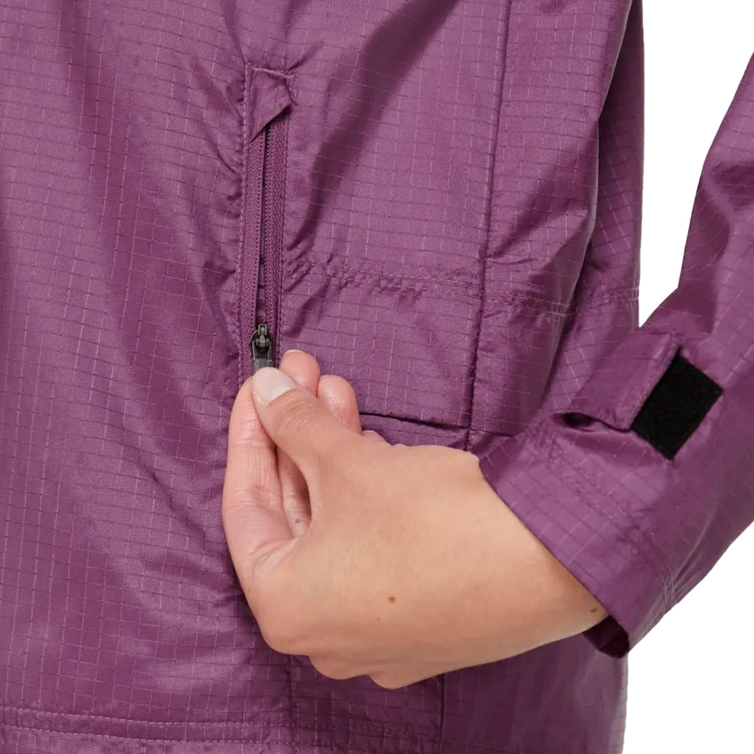• O capuz mantém você protegida dos elementos climáticos.
