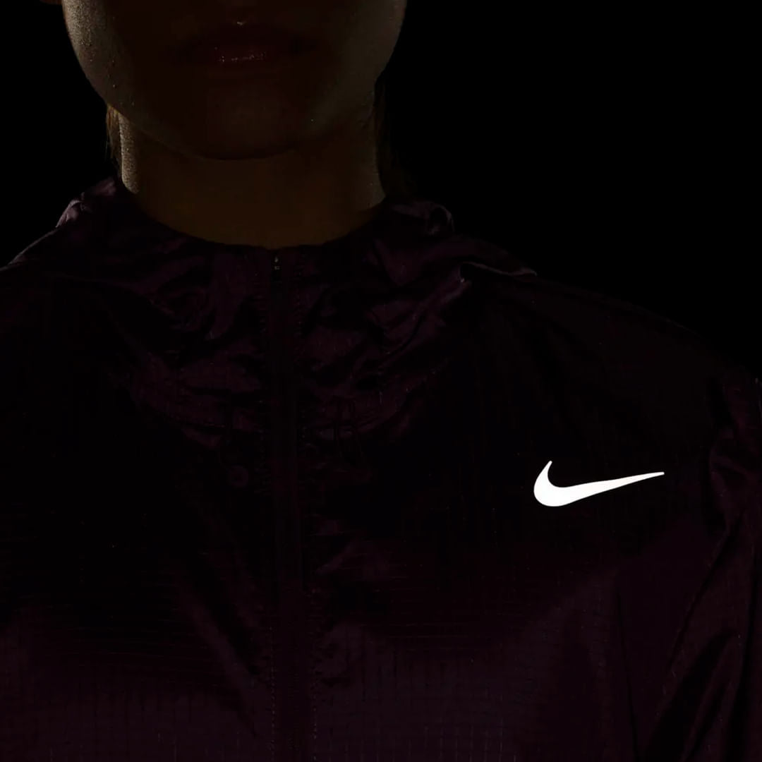 • A jaqueta de corrida Nike Essential te ajuda a ir mais longe mesmo em climas úmidos. O tecido impermeável se combina com cobertura com capuz para te ajudar a se manter seca por quilômetros.