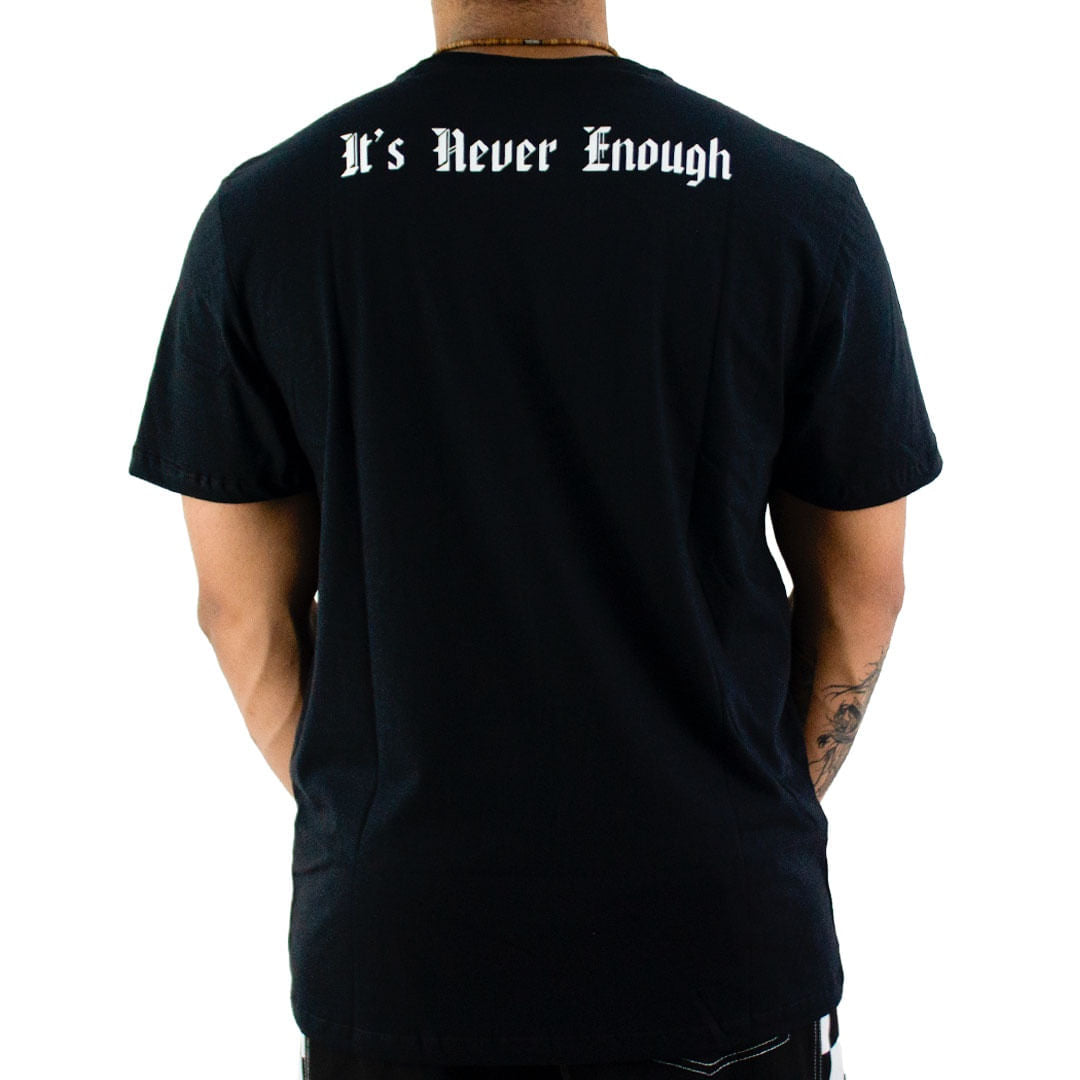 • Use um pedaço da cultura do surfe com a camiseta de manga curta Schroff X Volcom. • Projetada em colaboração com o artista de vanguarda, shaper e performer Peter Schroff, esta camiseta de caimento básico é feita com algodão fiado em anel de alta gramatura, destacando seu lema icônico "It's Never Enough".