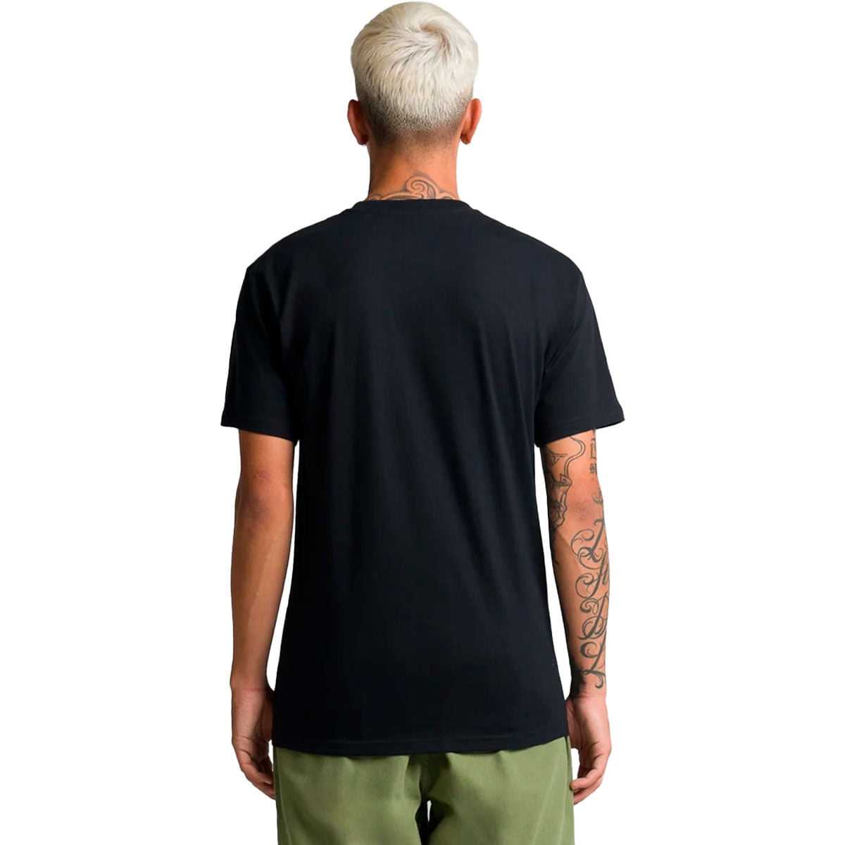• A camiseta masculina de manga curta, é confeccionada em tecido 100% algodão. Traz estampa frontal com assinatura Vans em “Drop V” centralizada na altura do peito, em silk à base d’água.