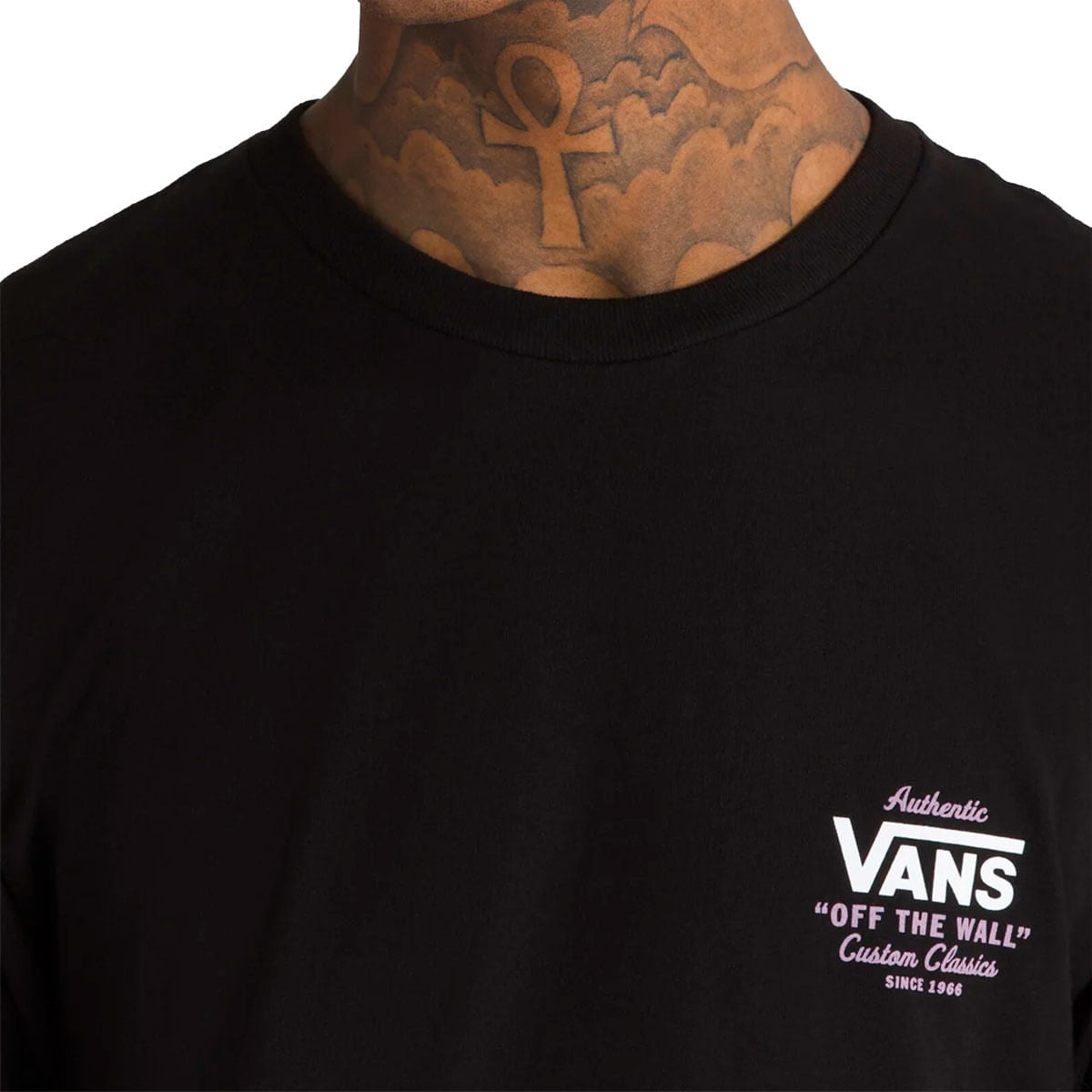 • A Camiseta Holder St Classic SS Black Lavender Mist da Vans une referências da arte e cultura de rua com um design clássico e versátil. Feita em 100% algodão, é confortável para o uso diário, com gola redonda, manga curta e etiqueta tecida Vans® aplicada na manga.