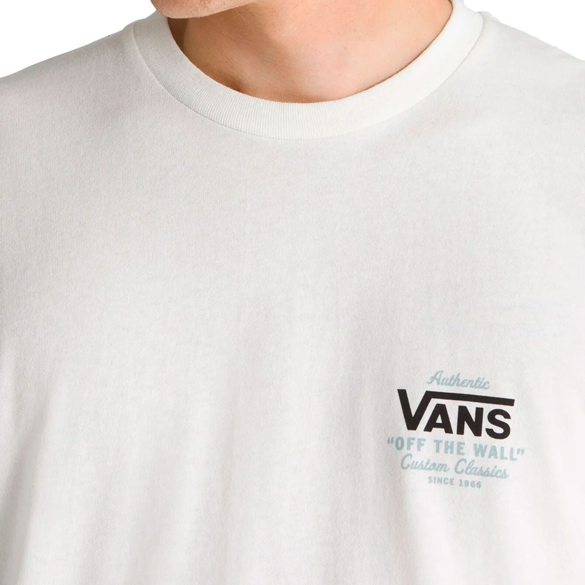 • O design apresenta a estampa clássica Vans® na parte frontal, localizada na altura do peito, no lado esquerdo. Já nas costas, a mesma estampa aparece em tamanho maior, ambas aplicadas em silk à base d’água, reforçando o estilo autêntico e atemporal da peça.