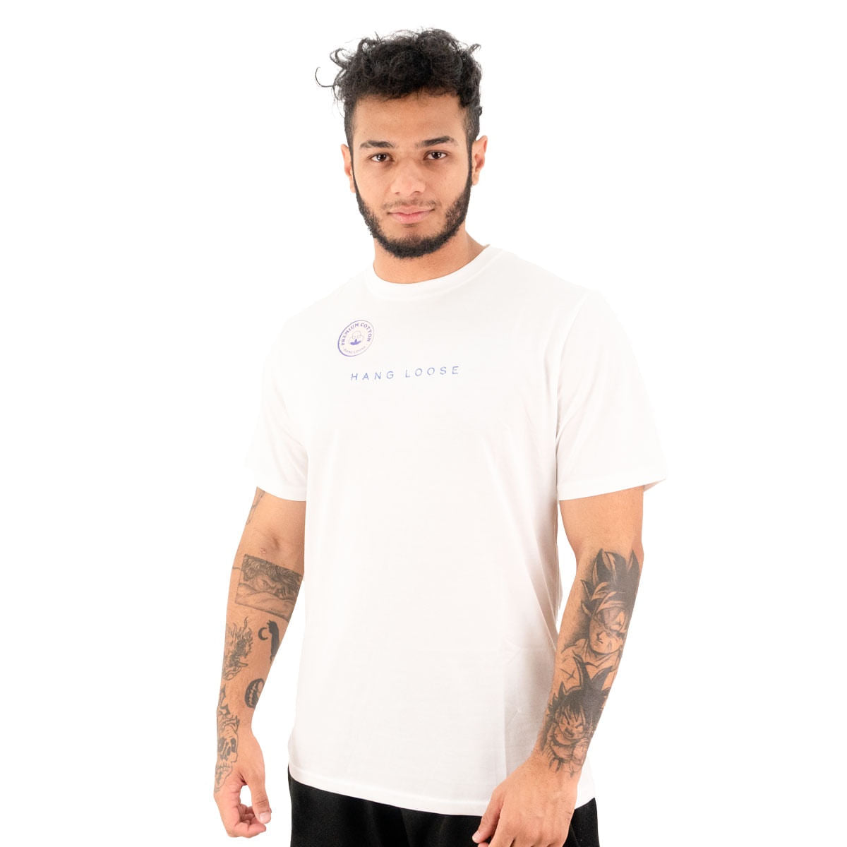 • A Camiseta Hang Loose é confeccionada em malha 30.1 de 100% algodão, proporcionando maciez, leveza e respirabilidade para o uso diário.