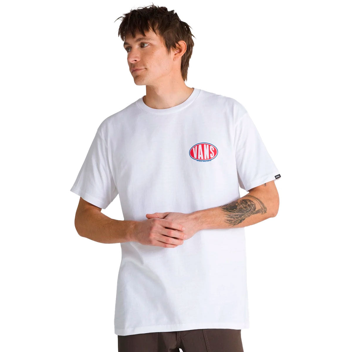 • A Camiseta Spray On SS White da Vans é um clássico atemporal que reflete a autenticidade "Off The Wall". Com design tradicional e icônico, ela é perfeita para quem busca um visual que nunca sai de moda, ideal para todas as ocasiões.