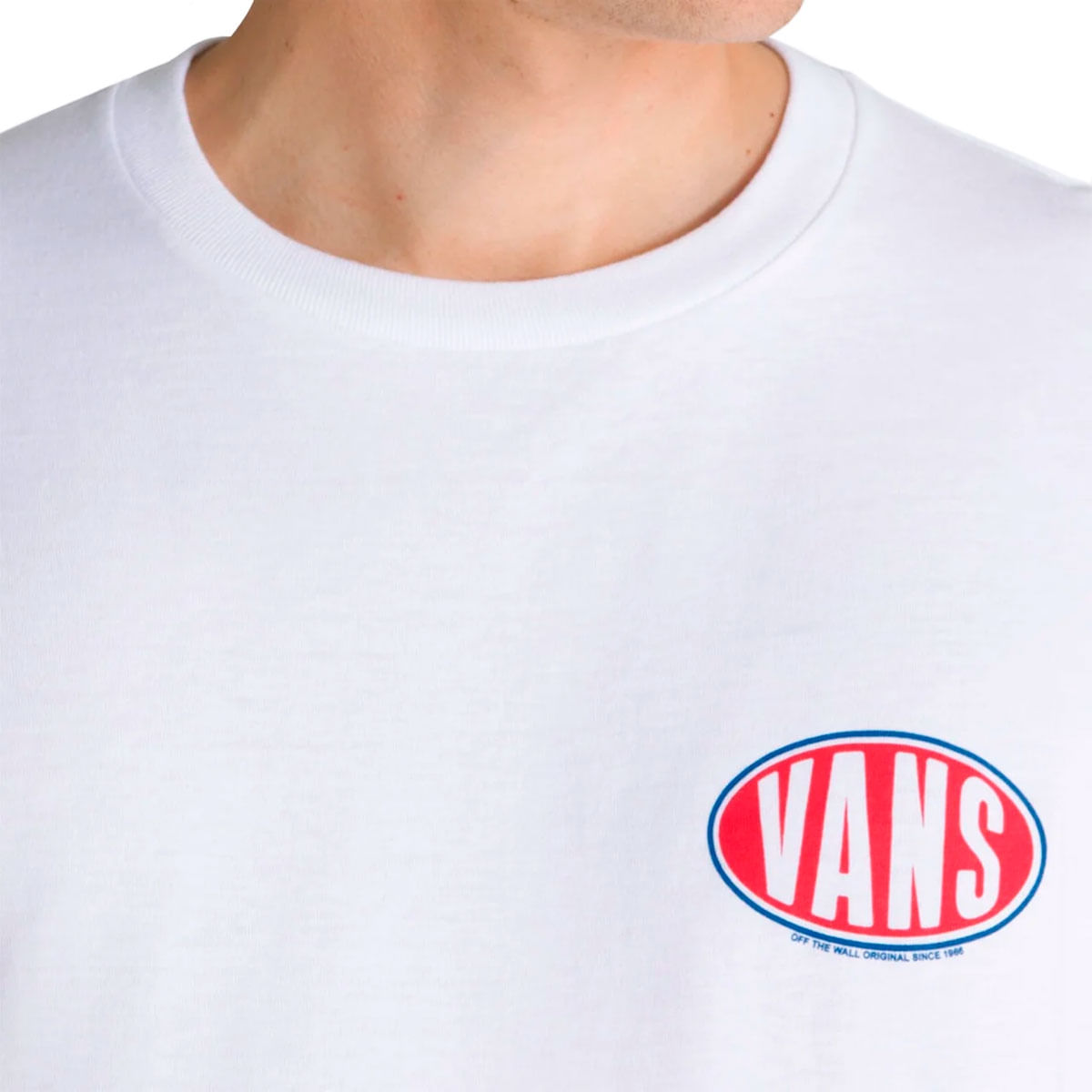 • O destaque fica por conta das estampas icônicas localizadas na parte frontal e nas costas, apresentando a assinatura Vans oval vintage, aplicadas em silk à base d’água. Uma peça indispensável para compor looks despojados com estilo e originalidade.