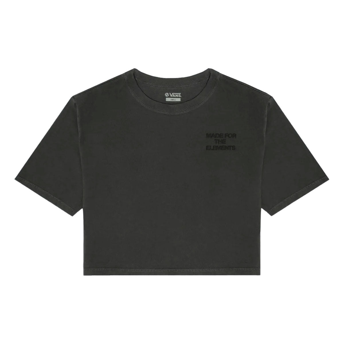 • A Camiseta Mte Trail Boxy Tee SS Crosspath Black tem gola redonda, mangas curtas e caimento quadrado. Traz estampa frontal, na altura do peito do lado esquerdo, com inscrição da frase icônica: “Made for Elements”. Já nas costas, traz assinatura Vans em “Drop V”, centralizada em destaque. Ambas estampas em pigmento sobreposto.
