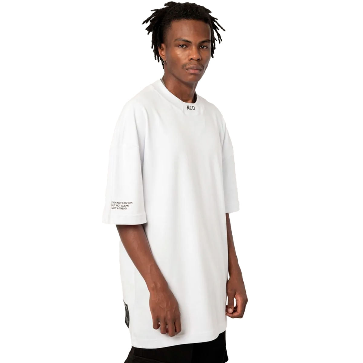 A camiseta MCD apresenta uma silhueta moderna e mais ampla, perfeita para composições casuais com estilo.