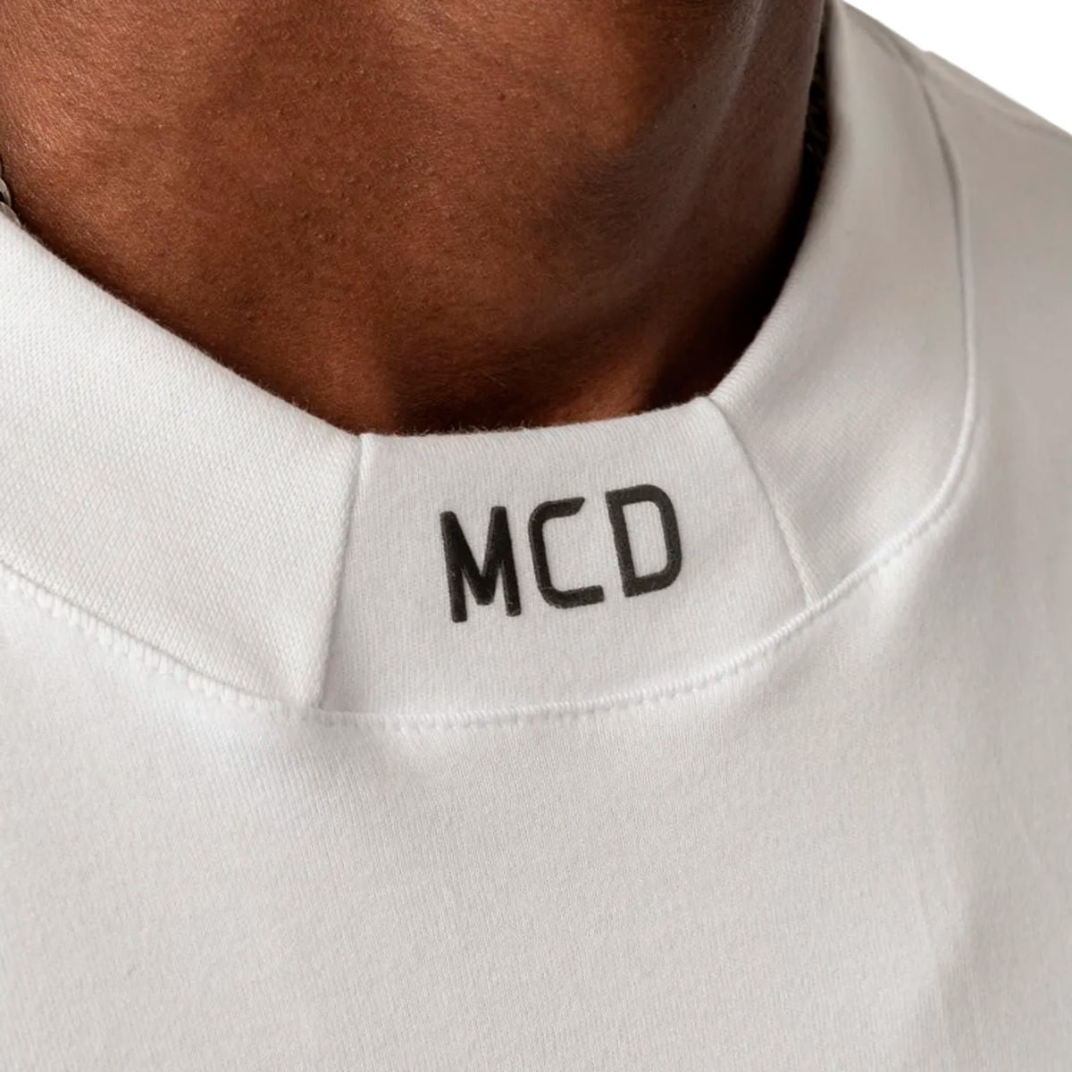 A gola ampla e reforçada é finalizada com bordado exclusivo MCD, garantindo autenticidade e durabilidade à peça.