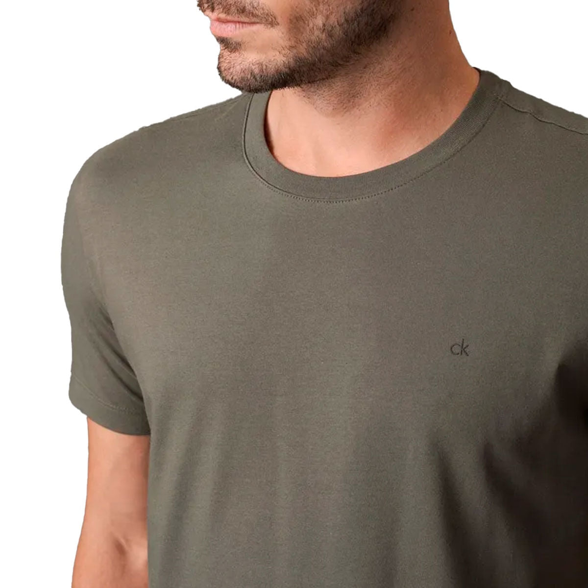 A Camiseta Calvin Klein na modelagem regular combina um visual moderno com o tom neutro e elegante do verde militar.