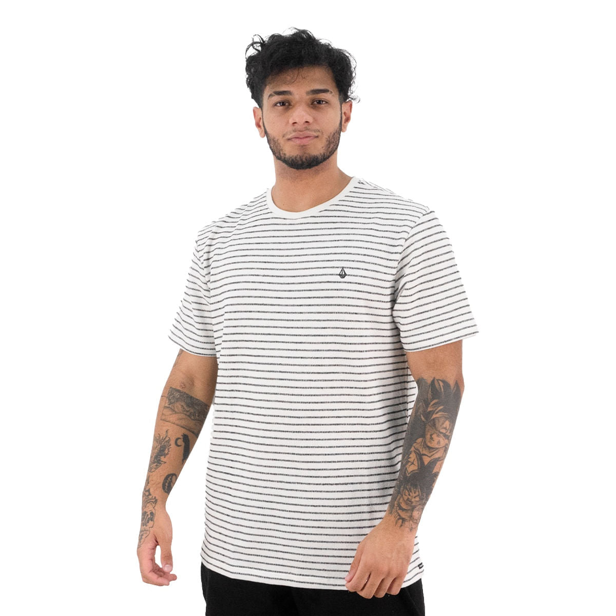 • Camiseta Volcom wipstone possui modelagem regular, bordado Volcom Stone frontal, listras em fio tinto, viés interno do próprio tecido e etiqueta Volcom na barra.