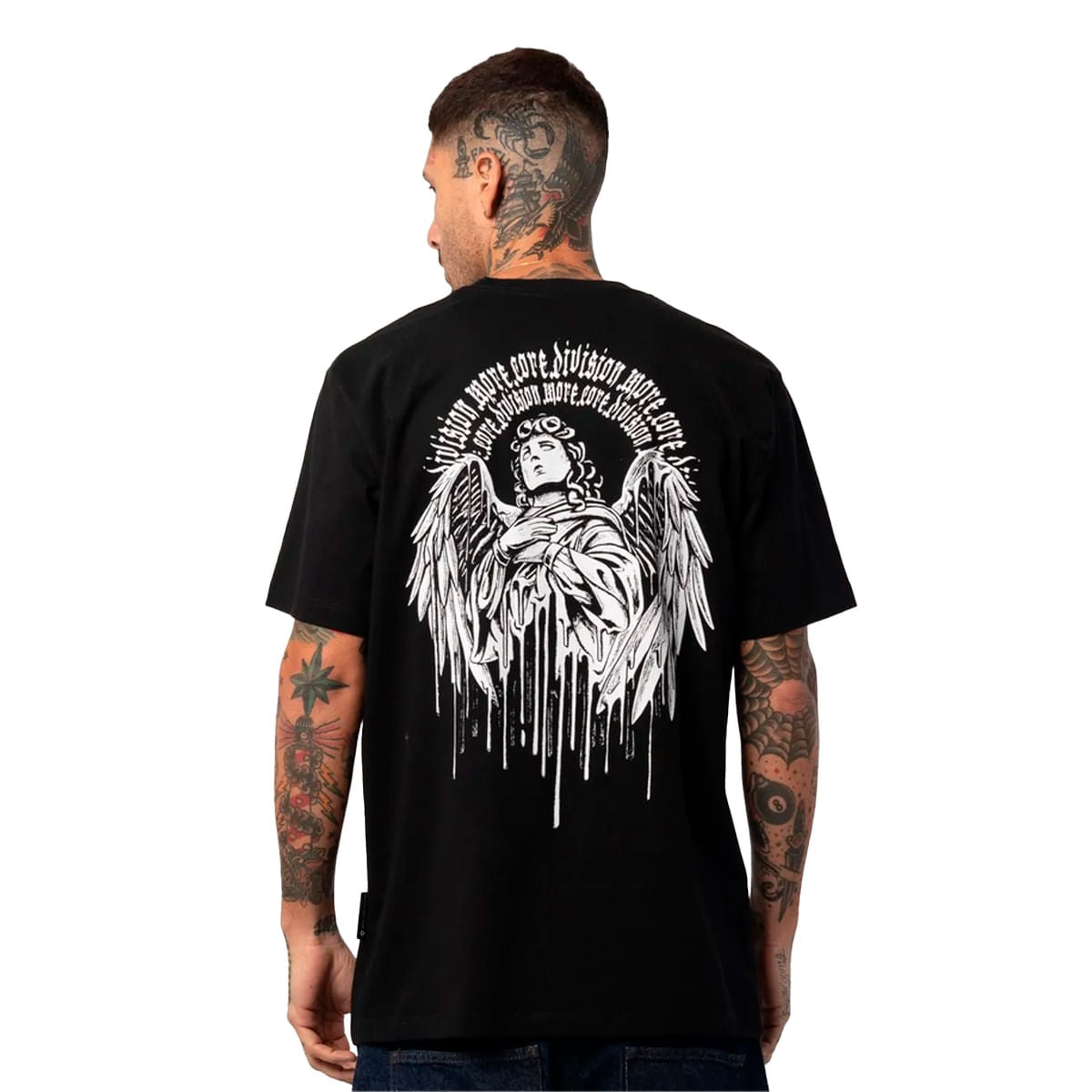 Estampa grande nas costas com o icônico anjo derretendo, somada ao reforço de gola e etiquetas personalizadas, traduzem toda a identidade única da marca.