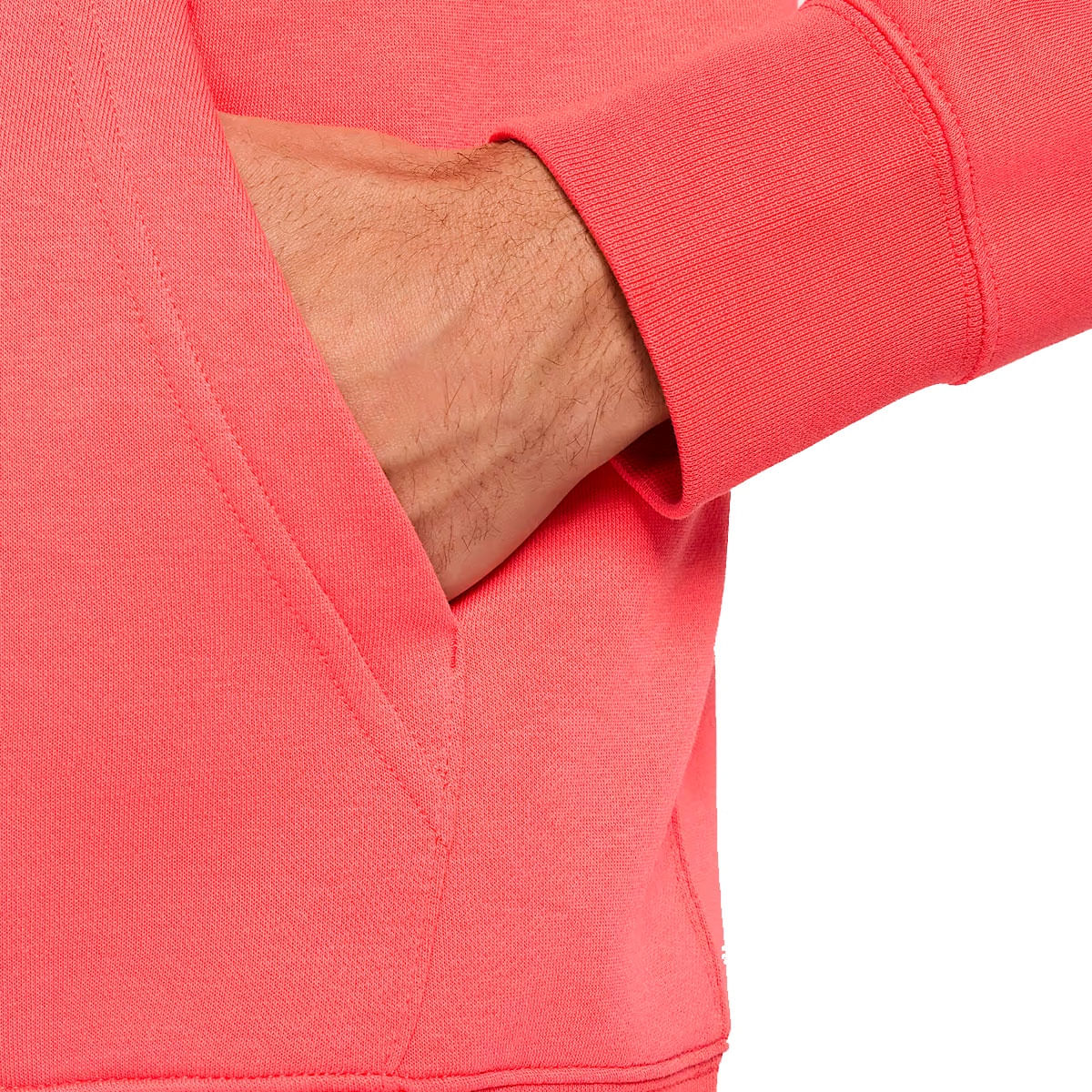 O logo Nike bordado no peito reforça a autenticidade, enquanto o bolso canguru e o capuz com cordão elevam a praticidade.