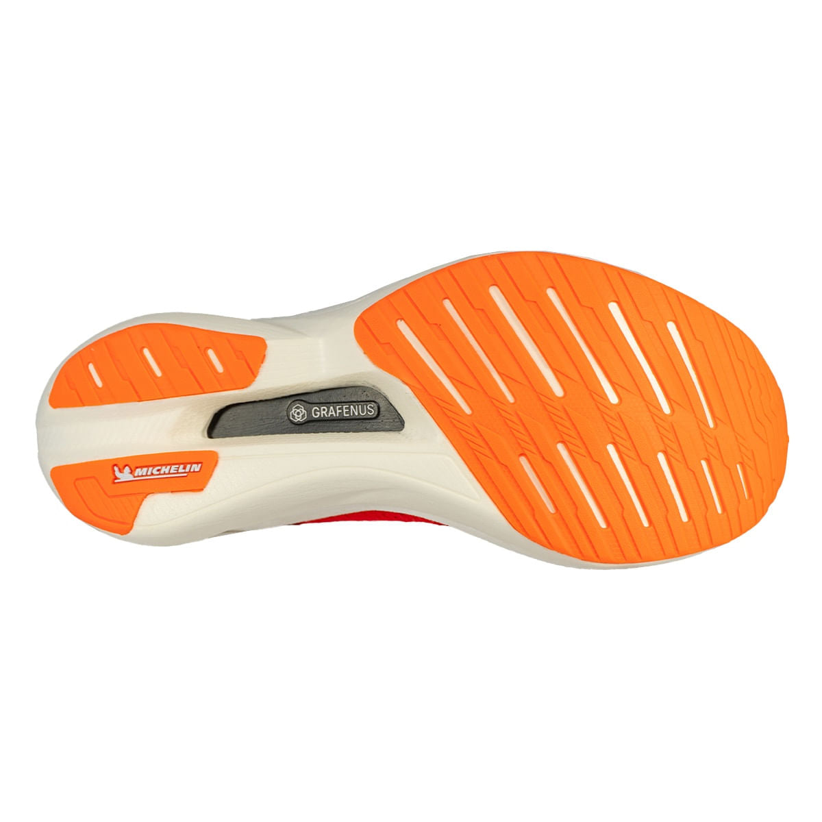 • A borracha antiderrapante desenvolvida em parceria com a Michelin oferece aderência superior em diversos tipos de piso, além de alta resistência à abrasão, essencial para quem acumula quilômetros semanais com foco em performance.