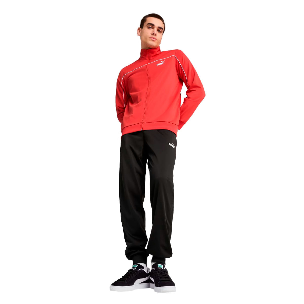 • Composto por jaqueta de gola alta e calça com cós elástico, o conjunto PUMA Essentials entrega versatilidade e praticidade. Ideal para dias de descanso, passeios ou looks esportivos casuais.