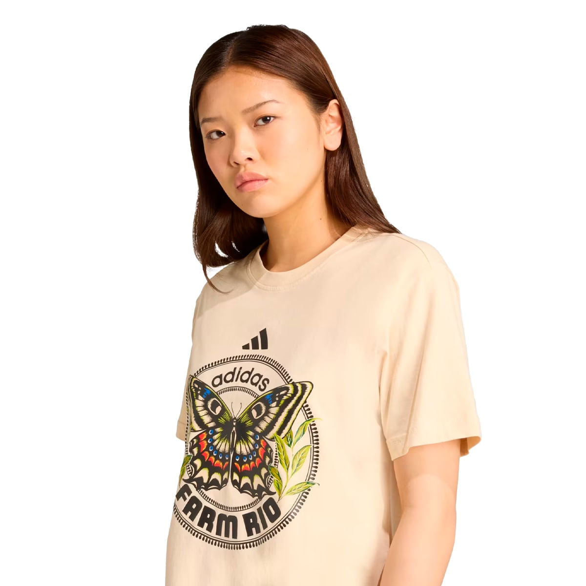 • Estilo vibrante e cheio de personalidade: A Camiseta adidas X FARM Graphic Tee une atitude esportiva com o simbolismo da borboleta, trazendo uma mensagem de transformação e liberdade em cada detalhe.