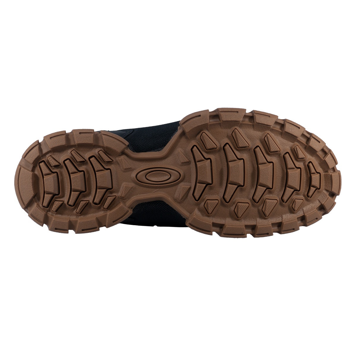 • O solado de borracha tratorada é antiderrapante e resistente à abrasão, garantindo excelente aderência em diferentes tipos de solo. O ajuste seguro fica por conta da lingueta macia e do fechamento por cadarço, com acabamento reforçado pelo logo metálico Oakley.